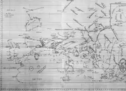 The four chorographic maps of the AD 1037 manuscript of al-Khwārizmī, including that depicting the Island of the Jewel, are the oldest surviving maps from the Islamic world.[8] Al-Khwārizmī gave the Island of the Jewel as the easternmost point of the inhabited world.[9] His gazetteer is divided by categories but altogether he provides coordinates for its coast, three cities, its surrounding chain of mountains, and two summits in the interior.[10] It lies in the Sea of Darkness near the equator,[11] east of the Golden Peninsula (Malaysia) and east of the still larger phantom peninsula now usually known as the Dragon's Tail.[12] Its center was given at 173° east of al-Khwārizmī's prime meridian off west Africa, and 2° north of the equator.[13]