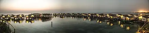 The Dolphin Park is a 70-hectare (170-acre) park located at the southeast corner of Kish Island. It is surrounded by over 22,000 palm trees and includes a dolphinarium, butterfly garden, silkworm compound, bird garden, artificial rain forest, volcanic mountain, orchid garden, and cactus garden. The dolphinarium includes the largest man-made pool on the island and it exhibits dolphins, sea lions, and white whales.[18] The Bird Garden in the park is home to more than 57 species of birds and other animals from around the world, including pelicans, ostriches, blue-and-yellow macaws, storks, toco toucans, turacos, swans, African penguins, and marsh crocodiles.[19]