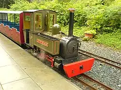 The Isle of Mull Railway was a 10+1⁄4 in (260 mm) gauge line, 1+1⁄4 miles (2.0 km) long, which ran from the ferry terminal at Craignure to Torosay Castle, on the Isle of Mull in the Scottish Inner Hebrides. Originally it was known as the Mull and West Highland Railway (Mull and West Highland (Narrow Gauge) Railway Company Ltd). The line was marketed as Scotland's original island passenger railway. The line opened in 1983 and closed in October 2010. A limited service operated over the 2011 Easter holiday and during summer 2011. The company's lease expired in October 2011. The track was lifted in October 2012.