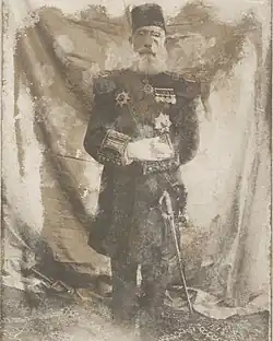 In Crete, Selim took part in several battles as well as in the siege of the Arkadi Monastery. During the late spring of 1867, he and Omar Pasha marched towards the Lasithi plateau aiming to crush the rebels.[4][5] Soon after the destruction of Lasithi, Selim died of an unknown cause. According to one reference he died of typhoid fever, while other sources attribute his death to the complications of a gunshot wound he had received earlier in Stylos, and a third reference tells that the death of Ismail might have been poisoning. It was said that Ismail did not move enough against the villagers, and therefore, Omar Pasha punished him. When his brother Antonios learned about the death of his brother, he is rumored to have said that "perhaps my brother was hit by one of the weapons I sent". His body was transferred to Egypt and buried in Cairo with high honors, whereas a cenotaph dedicated to him was erected in Heraklion and stood until 1925.[6] His bust and Portrayed are at the Egyptian National Military Museum in Cairo.