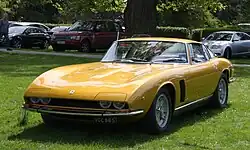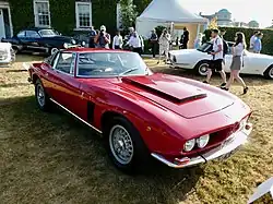 The Iso Grifo is a limited production grand tourer manufactured by Italian automobile manufacturer Iso Autoveicoli S.p.A. between 1965 and 1974.[1] Intended to compete with Grand Touring offerings from Ferrari and Maserati, it used a series of American power trains and components supplied by Chevrolet and Ford.[2][3][4] Styling was done by Giorgetto Giugiaro at Bertone, while the mechanicals were the work of Giotto Bizzarrini.[5]