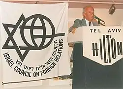 ICFR was founded in 1989 by David Kimche (1928–2010), a former deputy-director of the Mossad, the Israeli intelligence agency, who later served as director-general of Israel's Ministry of Foreign Affairs and Israeli ambassador-at-large.[3] The Israel Council on Foreign Relations is dedicated to the examination of international affairs, with special emphasis on world Jewish concerns and Israeli foreign policy. Based on the models of the New York Council on Foreign Relations and the British Chatham House, the Council is not affiliated with any governmental or academic institutions. It is an autonomous body maintaining a non-partisan approach to foreign policy matters, and accommodating a broad range of viewpoints.[1] Participants in the Council come from a wide cross-section of the most influential spheres of Israeli society, including government and Knesset officials, university professors, and leading businessmen, bankers, lawyers, and journalists.[4] The Council functions under the auspices of the World Jewish Congress, of which ambassador Ronald S. Lauder is president. The Council hosts speakers from around the world, including heads of state, prime ministers, foreign ministers, and other distinguished visitors. As well, the council hosts conferences, seminars, and a monthly European-Israeli Young Diplomats' Forum.