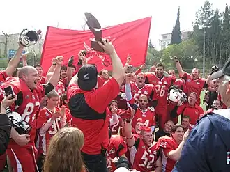 The original incarnation of the IFL consisted of pick-up games without helmets, pads or referees and was founded in 1999 by a group of football enthusiasts, including Ofri Becker, Gadi Gadot, Ben Friedman, Jonathan Yifat, Raviv Faig, Itay Ashkenazi, Yoram Leshem and Ori Shterenbach.[3][4] This initiative led to the formation of a tackle football league that was first played in 2005-2006 and included three teams, the Tel Aviv Pioneers, Haifa Underdogs and Tel Aviv-Jaffa Sabres with Haifa winning the first championship and the Ofri Becker trophy. American football was present in Israel dating back to 1988, when American expat Steve Leibowitz founded a touch football league.[4] In the summer of 2006, after one season, the Israeli group and Leibowitz agreed to merge their leagues and founded the current incarnation of the IFL.[4] However, it wasn't until 2007 that the first official season took place with coaches, referees and full equipment under the governing body of American Football in Israel (AFI) and under the guidance of Eric Amkraut, the first Commissioner of the IFL.[4] The inaugural season consisted of four teams with the addition of the Jerusalem Lions, and concluded with the latter winning Israel Bowl I.[4]