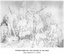 A version of the legend, documented in a 1788 biography by David Humphreys, holds that Putnam and others tracked a wolf to the cave after it had killed seventy sheep on Putnam's farm. Putnam entered the cave by torch light, shot the wolf, and was pulled from the cave by a rope tied to his ankles, dragging the wolf behind him. The story has possibly been embellished over the years, but the main themes of the story, the cave and wolf, are believed to be factual by most Putnam biographers.[4][5][6][7] The exploit was part of the early career of Putnam, who went on to become an officer in the French and Indian War, a leading Connecticut figure in the American Revolutionary War and a folk hero for many generations.[8]