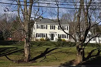 The Israel Whitney House is a historic house in Needham, Massachusetts. It is a 2+1⁄2-story wood-frame house, five bays wide, with a side gable roof and clapboard siding. Its front facade is symmetrical, with a center entrance flanked by sidelight windows and pilasters, and a corniced entablature on top. The house was built in 1830 by Israel Whitney, who had married Mary Fuller, a descendant of one of Needham's early settlers. Whitney had purchased the land on which the house was built in 1829. Whitney was a shoemaker and active in local politics, holding a variety of offices.[2]