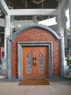 The interior was constructed using local resources such as Langkawi's marble and high-quality tropical wood for the doors crafted by hand to shape flowers and leaf motifs. The verdant carpets in the entrance hall and lobby feature cempaka flower and the banyan tree, inspired by traditional Malay opera or Mak Yong.[5]