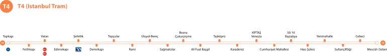 3. ^ a b c d e f g h i j k l m "T4 Topkapı Habibler Tramvay Hattı" [T4 Topkapi-Habib Tramway Line]. Istanbul-ulasim.com.tr (in Turkish). İstanbul Ulaşim A.Ş. Archived from the original on 27 July 2012. Retrieved 17 April 2014.