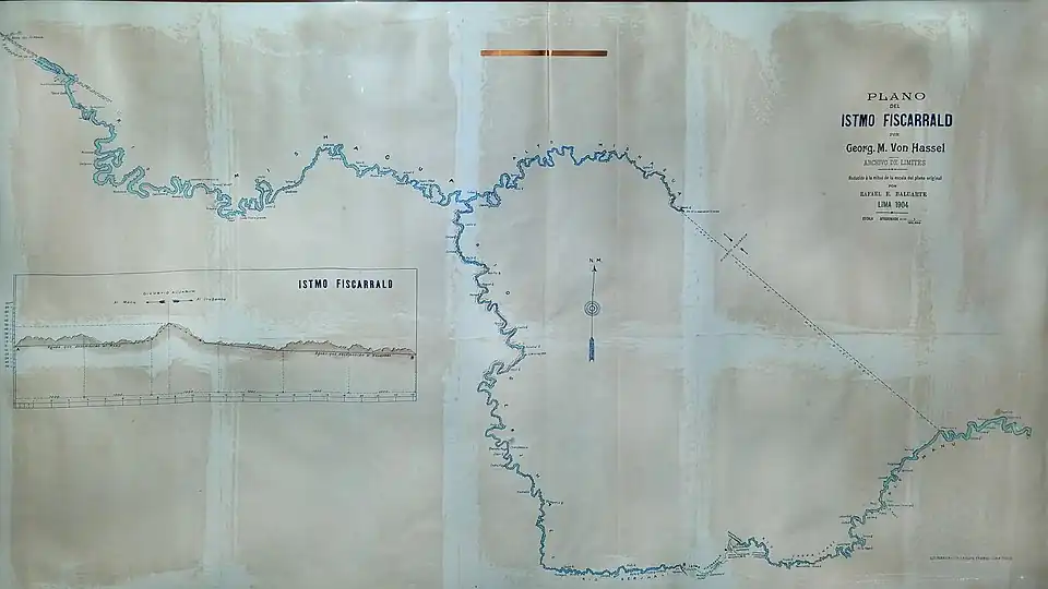 - ^ Baluarte, Rafael E. (1904-01-01), English: The Fitzcarrald Isthmus (Istmo Fitzcarral a.k.a. Istmo Fitz-Carrall) as mapped in 1904 by Rafael E. Baluarte. The Isthmus, discovered by Carlos Fermin Fitzcarrald, is a land bridge that is the shortest connection between the Serhali River (a tributary of the Urubamba and Amazon rivers) as well as the Caspajhali River, a tributary of the Madre de Dios river., retrieved 2019-07-25