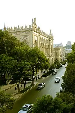 Istiglaliyyat Street (Azerbaijani: İstiqlaliyyət küçəsi) is an arterial road in the central uptown part of Baku, Azerbaijan. It begins at Gulustan Palace, located on the southern hillside part of Baku, and continues north, then northeast, terminating at the intersection of Aziz Aliyev and Mammad Amin Rasulzade Streets at the edge of Fountains Square.