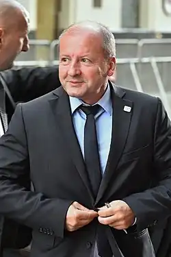 Simicskó was appointed to the position of Minister of Defence in September 2015 after the resignation of Csaba Hende during the European migrant crisis, with the speed at constructing a wall on the border with Serbia being an issue for Prime Minister Viktor Orbán.[9] Simicskó was re-elected MP for Újbuda during the 2018 parliamentary election, defeating Erzsébet Gy. Németh. He was replaced as Minister of Defence by Col. Gen. Tibor Benkő. Simicskó was appointed one of the recorders of the National Assembly in June 2018.[3] He held the latter position until July 2020, when he was elected leader of the KDNP parliamentary group, replacing Péter Harrach.[10] Simicskó was defeated by opposition candidate Anna Orosz in Újbuda constituency during the 2022 parliamentary election, nevertheless he gained a mandate via the national list of Fidesz–KDNP. Simicskó became a member of the parliament's National Security Committee.[3]