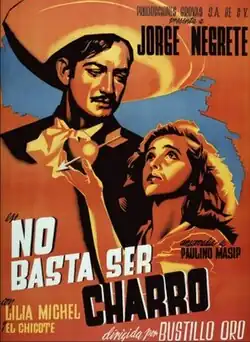It's Not Enough to Be a Charro (Spanish: No basta ser charro) is a 1946 Mexican musical comedy film directed by Juan Bustillo Oro and starring Jorge Negrete, Lilia Michel and Armando Soto La Marina.[1] [2] It was shot at the Clasa Studios in Mexico City. The film's sets were designed by the art director Vicente Petit. It was part of the tradition of Ranchera films, popular during the Golden Age of Mexican Cinema.