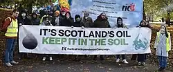 The economic background to the claim was the discovery of oil in the North Sea in the 1960s and its production starting in the 1970s.[3] Most of the largest oil fields in the UK sector of the North Sea were found in the waters to the north and east of the Scottish mainland, with the most northerly fields found to the east of the Orkney and the Shetland Islands.[4] Aberdeen became the centre of Britain's North Sea oil industry, with many oil terminals such as that of Sullom Voe in Shetland and Flotta in Orkney and at Cruden Bay and St Fergus on the north-eastern coast of Scotland being built to support the North Sea oil industry. In the early 1970s, there was a great deal of economic turbulence with the 1973 oil price shock, which was caused by the Yom Kippur War. That resulted in rising inflation, high unemployment and a recession, a situation known as stagflation, in Scotland and the rest of the United Kingdom.[5] Thus, the economic argument that formed the basis of the slogan was that while Scotland was part of the United Kingdom, it lacked control over royalties and the revenue from the majority of the oil, which lay in the Scottish sector of the North Sea.