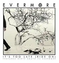 "It's Too Late" is the lead single from Evermore's debut album, Dreams (September 2004), which peaked at No. 16 on the ARIA Singles Chart.[1] The group consists of three New Zealand-raised brothers, Jon (lead vocals, lead guitar), Peter (backing vocals, piano, keyboards, bass guitar), and Dann Hume (backing vocals, drums) – they co-wrote "It's Too Late".[2] Evermore worked with producers Barrett Jones (Nirvana, Foo Fighters, Whiskeytown)[3] and (Dave Matthews Band, John Mayer).[4][5]