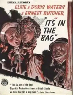 It's in the Bag is a 1944 British comedy film directed by Herbert Mason and starring Elsie Waters, Doris Waters and Ernest Butcher.[1] It was produced and distributed by Butcher's Film Service. Gert and Daisy try to recover a valuable lost dress.