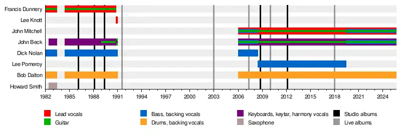 - John Beck – keyboards, keytar, guitar, bass guitar, backing and harmony vocals (1982–1983, 1984–1990, 2006–present)