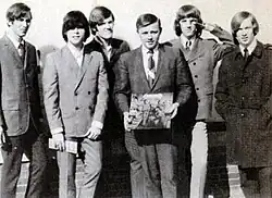 In 1966, upon learning that another band was already using the name “Tommy and the Travelers”, they needed to find another name. J.C. Hooke was familiar with Tommy Krein of that band, and asked him if he would be interested in joining their band instead; when Krein (pronounced Cryan) declined, Hooke remarked that it was "a cryan' shame," thus naming the band.[2] After the Cryan' Shames signed with Bob Monaco, the promotion manager for Destination Music, their first single was supposed to be George Harrison's song "If I Needed Someone"; however, due to publication issues, it was not released (although it was included on their debut album). Instead, their first single was "Sugar and Spice," a Tony Hatch song that had been a 1963 hit for the English group The Searchers. The Shames' version reached number 49 in the US and number four on Chicago radio (WLS). Another single was released just before the end of 1966 called "I Wanna Meet You" b/w "We Could Be Happy", both composed by Jim Fairs. This record made it to number one in Chicago and number 85 nationally.[3]