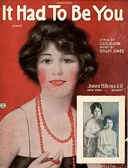 "It Had to Be You" is a popular song composed by Isham Jones, with lyrics by Gus Kahn.[5] It was published on May 9, 1924. by Jerome H. Remick & Co. of New York. The Isham Jones Orchestra recorded an instrumental version of it on April 24, 1924, at Brunswick Studios, 799 Seventh Avenue, New York City,[4] and it was released in July.[6]