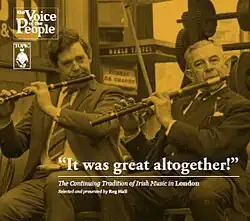 Reg Hall defines the booklet of the other compilation in the series, the 'London-Irish' as a distinct ethnic community of settled migrants and their offspring with topping up from a constant trickle of immigrants from Ireland.[2] On this second compilation most of the musicians were raised in Ireland with a few from London, some of whom travelled to Ireland for holidays.