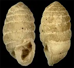 Sequence 1 of the formation has provided many land snails, among which several new species. The records of Itaboraí are the oldest for the genera Austrodiscus, Brachypodella, Bulimulus, Cecilioides, Cyclodontina, Eoborus, Gastrocopta, Leiostracus, Plagiodontes and Temesa. Also, the formation contains the oldest record for the families Orthalicidae, Gastrocoptidae, Ferussaciidae and Strophocheilidae.[30]
