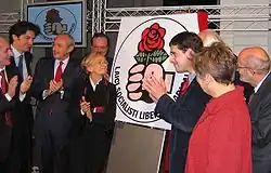 In November 2005, the Radicals formed an alliance with the Italian Democratic Socialists (SDI),[14] becoming de facto members of The Union coalition for the 2006 general election. The "rose in the fist", the symbol of the Socialist International (which included the SDI) which the Radical Party bought from the French Socialist Party, was chosen for the joint list that was thus named Rose in the Fist (RnP). This decision led those Radicals who were more keen on an alliance with the centre-right to split: this group, led by Della Vedova, launched the Liberal Reformers and joined the House of Freedoms, eventually merging into Berlusconi's Forza Italia.