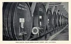 Key personnel in these early years, besides Sbarboro, were Charles Kohler, Paolo de Vecchi, and Pietro Rossi. Rossi led the company to develop its own agencies to sell directly to eastern markets; soon after the wine was being sold in Europe, South America, and Asia. The huge wine cistern (with a capacity of 500,000 U.S. gallons or 1.9 megaliters) that Sbarboro had had built became a tourist attraction.[1] By 1905, the wines had won medals at various international competitions.[4][1] By 1910 the company owned over 5,000 acres (2,000 hectares) in various holdings in the Central Valley.[1]