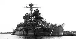 Once Italy entered the war, Emanuele Filiberto was used as a harbor defense ship in Venice to protect the port from Austrian naval attacks. She was aided in this task by her sister and the old ironclad Sardegna, along with two cruisers and several smaller craft.[12] The ship remained in the Italian Navy's inventory for only a short time after the end of the war in 1918, and she was stricken from the naval register on 29 March 1920 and subsequently broken up for scrap.[1]