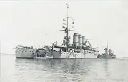 - ^ These were all pre-dreadnought battleships, and were thus obsolescent by this period, but Italy's first dreadnought, Dante Alighieri, did not enter service until 1913.[4]