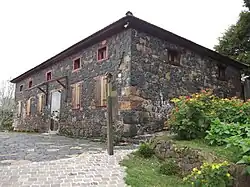 The organization of the farm was simple and practical. A rustic wooden house, sometimes of adobe or stone, divided into a large kitchen where the focolaro (the domestic fire) was, and one more living room, one or two bedrooms, and an attic as storage or additional sleeping quarters. There was usually a basement for a domestic canteen and storage room. Next to the house, there would be a stable, a barn, a pigsty, and a chicken coop. Often the kitchen was located in a separate room from the main body, because of the danger of fire, as it kept burning all day. A vegetable garden was also planted, in addition to the main crops.[13] In the second stage, when the situation stabilized, the rustic houses and pavilions of the beginning were replaced by larger and better-equipped facilities, often with external and internal ornaments, of which an important group of stone, masonry, and wood, in various typologies survives.[3][12]