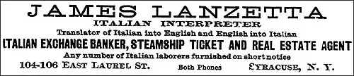 - ^ a b Loos, J. (March 19, 1897). "Syracuse's Foreign Born Population—Some Statistics". Syracuse Sunday Herald. Syracuse, New York. Retrieved September 18, 2013.