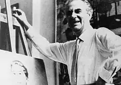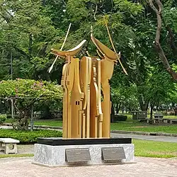 One of the most significant Italian artists in Thailand was Corrado Feroci, who later became a Thai citizen under the name Silpa Bhirasri. He arrived in Siam in 1923 to train artists and craftsman. He was later asked by the government to plan the curriculum and textbooks, and became instrumental in the early years of Silpakorn University.[38] Notable monuments designed by Silpa include the Democracy monument, Victory monument, the statue of King Taksin at Wongwian Yai, and the statue of Gautama Buddha at Phutthamonthon. He is sometimes regarded as the 'Father of modern Thai art'.[25]