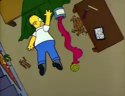 The scene where Maggie hits Homer over the head with a mallet is an extensive parody of the shower scene from Psycho, in which the music and camera angles are almost identical.[4] The music heard while the children play outside is the first movement of Beethoven's Pastoral Symphony, and is similar to a segment of the Disney film Fantasia.[3] Nelson whitewashing a fence at the end of the sequence is a reference to The Adventures of Tom Sawyer and resembles Norman Rockwells painting Tom Sawyer (Whitewashing the Fence).[8][9][10][11]