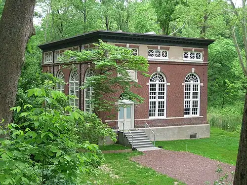 The substation was built in 1907 and operated as a power substation for the railroad until 1919.[5] In 1920, Thomas Newhall (the president of the Philadelphia & Western Railroad) purchased the building for his personal use as a recreation and club room, including a squash court and space to house his gun collection. In May 1947, six months after his wife died, Newhall (in a depression state) committed suicide in the building by means of a self-inflicted gunshot wound.[5]
