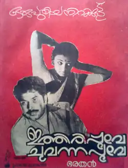 Ithiri Poove Chuvannapoove is a 1984 Indian Malayalam-language film, directed by Bharathan, with story written by Thikkodiyan and produced by P. V. Gangadharan. The film stars Madhu, Mammootty, Rahman, K R Vijaya, Suresh and Shobana. The film has musical score by Ravindran.[1][2]