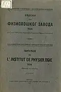After publishing his PhD thesis Study on ferments of glycosides and carbohydrates in mollusks and crustaceans in 1909, his first monograph was Ferments and physiology in 1912 and other important works in the next decade include Notes on a scientific work (1914), Biology papers (1918), Fundamental biological energy and energetics of kvass (1919), Does living yeast cause fermentation of sugar only by its zymase? (1919), Use of ferments in cell physiology studies (1919), Fundamental biological energy (1920), About electric thermostate (1920) and Experimental search for the common energetic foundation in living beings (1921), while in 1923 he published the first textbook on human and animal physiology in the region, Fundamentals of physiology.[11] Other scientific works include Mutual replacement of food ingredients in peak metabolism (1926), Basal metabolism and homeothermy (1929), Peak metabolism (1929), Problem of evolution (1931), Homeothermy and thermoregulation I-II (1938) and Hypothermia, hyberniation and poikilotherms (1953). Monograph Man and the inventive life, published in 1955, is considered to be his opus magnum.