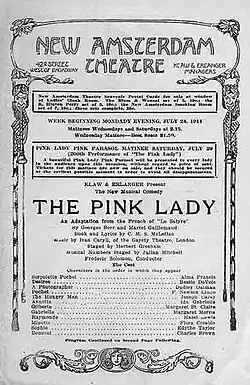 Caryll relocated to New York City in 1910, where he became an American citizen and composed more than a dozen Broadway musicals,[12] including The Pink Lady (1911, with Hugh Morton), Oh! Oh! Delphine!!! (1912), Chin-Chin (1914; including "Ragtime Temple Bells"),[14][15] Jack o'Lantern (1917), and The Girl Behind the Gun (1918, with a book by P. G. Wodehouse and Guy Bolton; the following year, it was a hit in London as Kissing Time). According to Wodehouse, Caryll was widely known as "Fabulous Felix", and "lived en prince ... having apartments in both London and Paris as well as a villa containing five bathrooms overlooking the Deauville racecourse."[16]