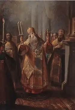 His free-standing art works are few. The best known are "Архиерей во время служения литургии" (Bishop Presenting the Divine Liturgy, 1770), and "Голова апостола Петра" (Head of the Apostle Peter, 1783), both in the Tretyakov Gallery. His son, Mikhail Ivanovich Belsky, also became a painter.[3][4]