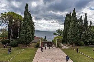 After creating four clay sculptures to memorialize his children, Meštrović died in early 1962, aged 79, in South Bend, Indiana. His funeral mass was celebrated by the bishops of Šibenik, Josip Arnerić, and bishop of Split-Makarska Frane Franić.[23] His remains were interred at a mausoleum in his childhood home of Otavice. Communist Yugoslav authorities had originally promised the Meštrović family that his remains could lie in repose at the cathedrals in Zagreb and Split. Once his remains had arrived in Yugoslavia, however, the authorities reneged and did not allow this to take place. After communist officials interfered during his funeral, his son Mate Meštrović sharply criticized the level of religious freedom in the country.[24]
