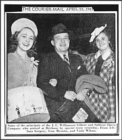 In 1931, Menzies joined the J. C. Williamson Gilbert and Sullivan company in Australia. He toured extensively with that company as Sir Joseph Porter in H.M.S. Pinafore, General Stanley, Bunthorne, the Lord Chancellor, Ko-Ko, Jack Point, the Duke of Plaza Toro and the Learned Judge, leaving Griffin and his infant daughter in England while carrying on extra-marital affairs in Australia.[3][6] Menzies was not a generous performer, and he was notorious for hogging the spotlight and making demands upon Williamson's managers.[7]