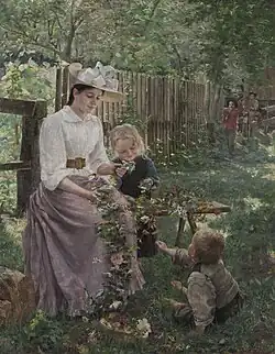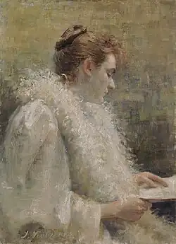 Ivana Kobilca was born in Ljubljana as a daughter in a wealthy family of a craftsman. Her parents gave great emphasis on education. At first, she learned how to draw, but also French and Italian, in the Ursuline High School in her home town, where her teacher of drawing was Ida Künl. When she was 16, she went with her father to Vienna, where she saw the paintings of old masters that inspired her. From 1879 to 1880, she studied in Vienna, where she copied the paintings at the gallery of the Academy of Arts, and from 1880 to 1881 in Munich. From 1882 to 1889, she continued her studies under Alois Erdtelt.[5] In 1888, she participated for the first time in a public exhibition.[5] At the following exhibition in Munich, her work was spotted and praised by the prominent German art historian Richard Muther.[5] She then returned to Ljubljana. In 1890, she painted in Zagreb. In 1891 and 1892, she painted in Paris in the private school of Henri Gervex. She became an honorary member (membre associée) of Société Nationale des Beaux Arts.[1] In 1892, she also painted in Barbizon. In 1893, she returned to Ljubljana, visited Florence in 1894, and lived in Sarajevo from 1897 to 1905. From 1906 to 1914, she lived in Berlin, and then returned to Ljubljana. At the time of her death in 1926 in Ljubljana, she was described as the greatest Yugoslav female painter.[2]