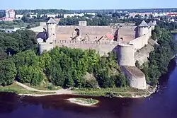 Ivangorod Fortress (Russian: Ивангородская крепость; Estonian: Jaanilinna linnus; Votic: Jaanilidna) is a castle in Ivangorod, Leningrad Oblast, Russia. It was built in the 15th century. It is located on the east bank of the Narva River, which currently forms the international border between Russia and Estonia, across from the city of Narva in Estonia.