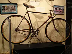 Even when they were new, I-J's were marketed and had a reputation for being very graceful looking, well built, and engineered for performance. Iver Johnson sponsored the career of bicycle racing champion Major Taylor beginning in 1900.[22] One 1924 I-J model had a truss-bridge frame which featured a curved tube under the top tube to strengthen the frame for use on the rough roads of the early twentieth century.[23] Bicycle production ceased in 1940 with the buildup of arms production prior to World War II.[15]
