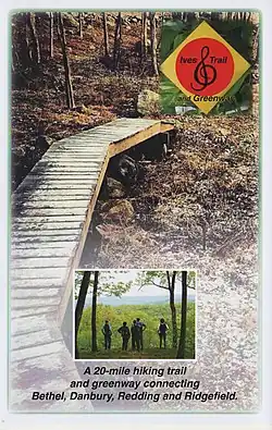 The Ives Trail and Greenway is a 20-mile (32 km) hiking trail in the Housatonic Valley Region (also known as Greater Danbury). Its route connects Ridgefield, Danbury, Bethel and Redding. The Ives Trail is named after Charles Ives, a Danbury-born American modernist composer.