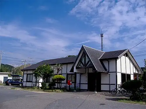 The station consists of two opposed side platforms connected by a footbridge. The station building still exists, but used as a bakery and offices for the local JA office. The station is unattended.