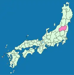 Iwashiro Province (岩代国[a], Iwashiro no Kuni; Japanese pronunciation: [i.wa(ꜜ).ɕi.ɾo (no kɯ.ɲi)][2]) is an old province in the area of Fukushima Prefecture.[3] It was sometimes called Ganshū (岩州).