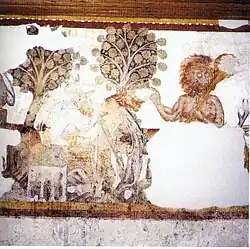 Iwein was recognized by contemporaries and later generations alike as a masterpiece and a classic.[2] Its enduring popularity is attested both by the large number of manuscripts from the whole High German area over three centuries[3] and by the depiction of scenes from the poem in a number of frescos.[4][5]