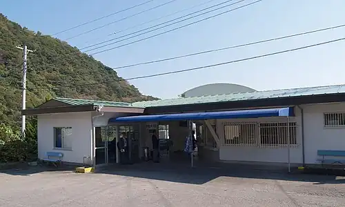 Izu-Ōkawa Station was opened on December 10, 1961. The station is located next to Ōkawa hot springs, and there is a foot bath on the grounds of the station.