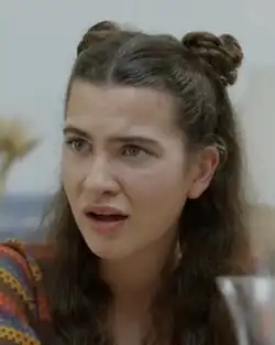 While staying with Daniel during half term, she sees netting hung across a tree in a car park and researches its purpose. When she discovers that they were hung in order to prevent birds from roosting there, she plans to cut them down with Daniel and Valerie. While there, the police arrive, and Valerie takes Izzie home while the police take Daniel into the station for questioning. Izzie worries that their actions have been caught on CCTV, but the owner of the car park declines to press charges. Izzie unexpectedly arrives at Daniel's house alongside best friend Taylor Davies (Giuseppe Graham) after her mother has kicked her out following a feud.[15] Izzie is disgusted with Daniel when he assumes that Taylor is a gay man, informing him that Taylor is genderfluid. Izzie herself comes out as pansexual and is surprised when Daniel accepts her sexuality.[16] She begins living with Daniel and Zara on a permanent basis and starts at the local school, but after online trolling and new boyfriend Lee Blackwell (Kieran Boon) cheating on her, she decides she wants to return to Lisa's house.[17]