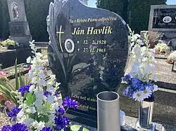 Havlík's relics are displayed in the Church of Saint Vincent de Paul in the Ružinov borough of Bratislava. A newly constructed chapel of the Blessed Ján Havlík was constructed in the church to hold the relics. 11 vertical columns are installed in the chapel symbolizing 11 years Havlík spent imprisoned for his faith.[12] Litanies to Ján Havlík were published in March 2023 in preparation for the beatification.[13] The writer Daniel Hevier wrote the words of the hymn to Blessed Ján Havlík.[14]