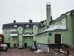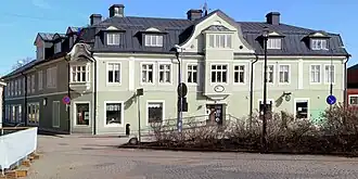 Järnhandelns hus, also known as Gamla järnhandeln, is a building located in the block Orren in Hedemora, Dalarna County, Sweden. The building was erected 1905–1906 for ironmonger V. A. Grundin, after blueprints by Carl Johan Carlsson (Perne).[1] The house has three floors and a basement. On the ground floor there were spaces for three stores and a further five rooms. On the two upper floors thirteen and eight rooms were located, and located around the house were a number of smaller spaces, such as bathrooms and porches. Many changes were made to the building, especially during the 1930s. In 1921 a vault was added in the premises of Lantmannabanken, designed by Perne. A water closet and a central heating system were installed 1930–1932.[2]