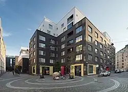 Plans exist to build about 300 new apartments, a swimming hall and sport facilities in Bunkkeri, an old warehouse of the cargo ship harbour. In 2023, the city moved to withdraw from the contract, citing not being able to find an investor for the project.[14] In 2019 there were plans to build a new parking garage, a new sports centre and a 24-floor Royal Center hotel in Jätkäsaari, construction of which started in early 2020.[15][16] A primarily Swedish-speaking block named Kvarteret Victoria was also built in the area.